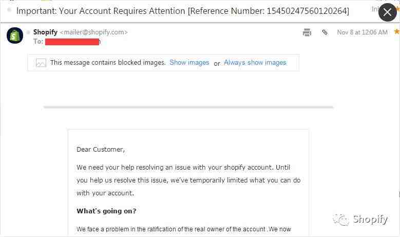 最近收到不少网友的反馈说收到了伪装成Shopify官方的钓鱼邮件,在FB上也看到不少老外在说这个事情。本篇就带大家了解下这些钓鱼邮件的伎俩以及防范办法,避免遭受损失。