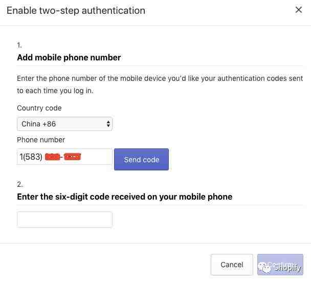 通过启用Shopify的二次验证登录方式给自己的账户上两把锁。这样,即使因为疏忽,账号密码被盗,盗贼也无法登录你的账号。因为启用二次验证之后,每次使用不同电脑或者不同的IP地址登录Shopify账户的时候,都需要输入账号密码的同时,输入Shopify通过短信的方式发送给你的验证码,才能最终登录成功。而常用的电脑,IP地址,则不会触发二次验证。