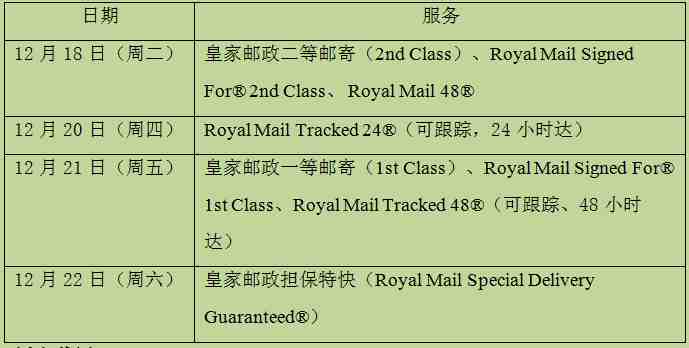 3、英国当地快递服务2018年圣诞节前的后一次收件时间