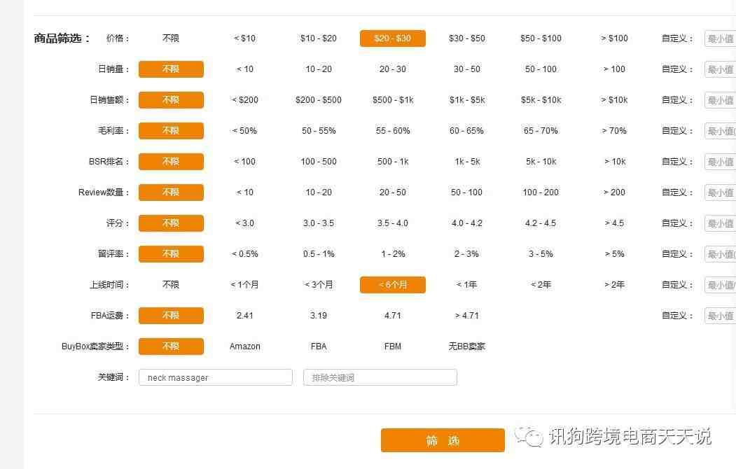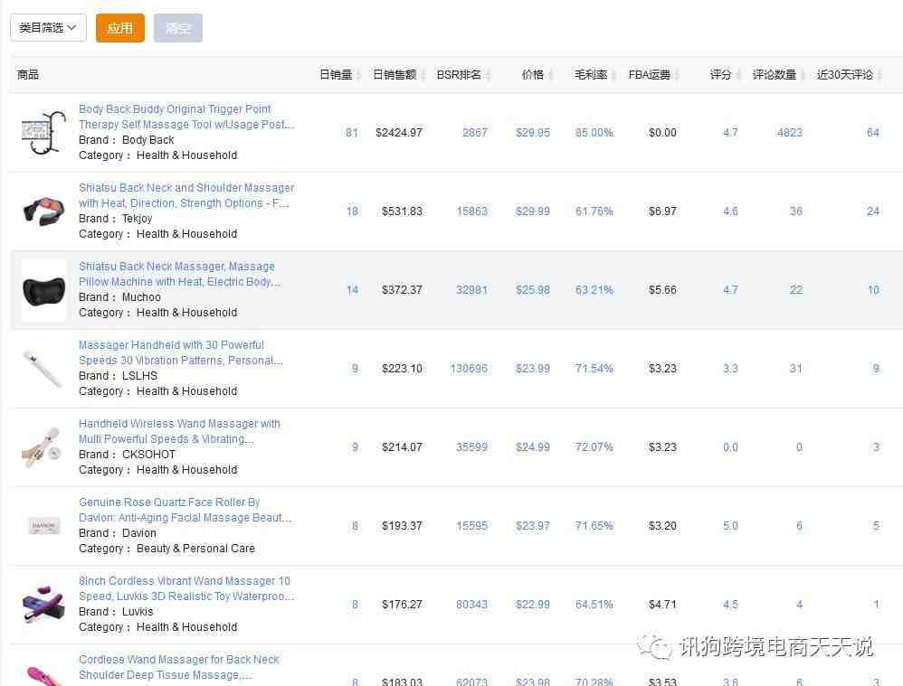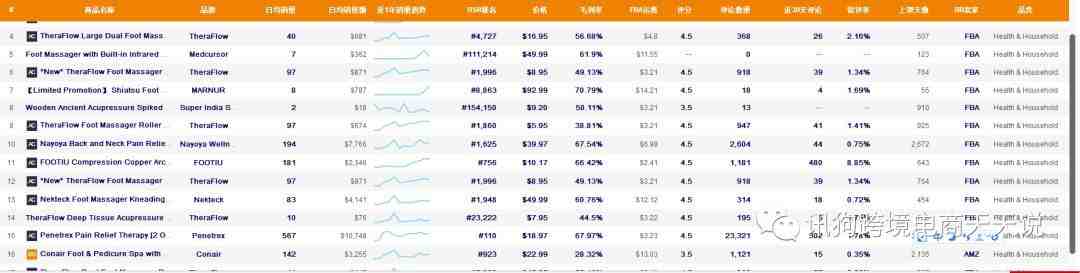 我们去年做产品调研的时候发现Foot Massager和Neck Messager两个词组类目里有很多隐藏的适合中小卖家的可以操作的爆款产品。
