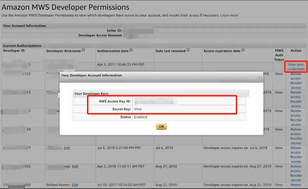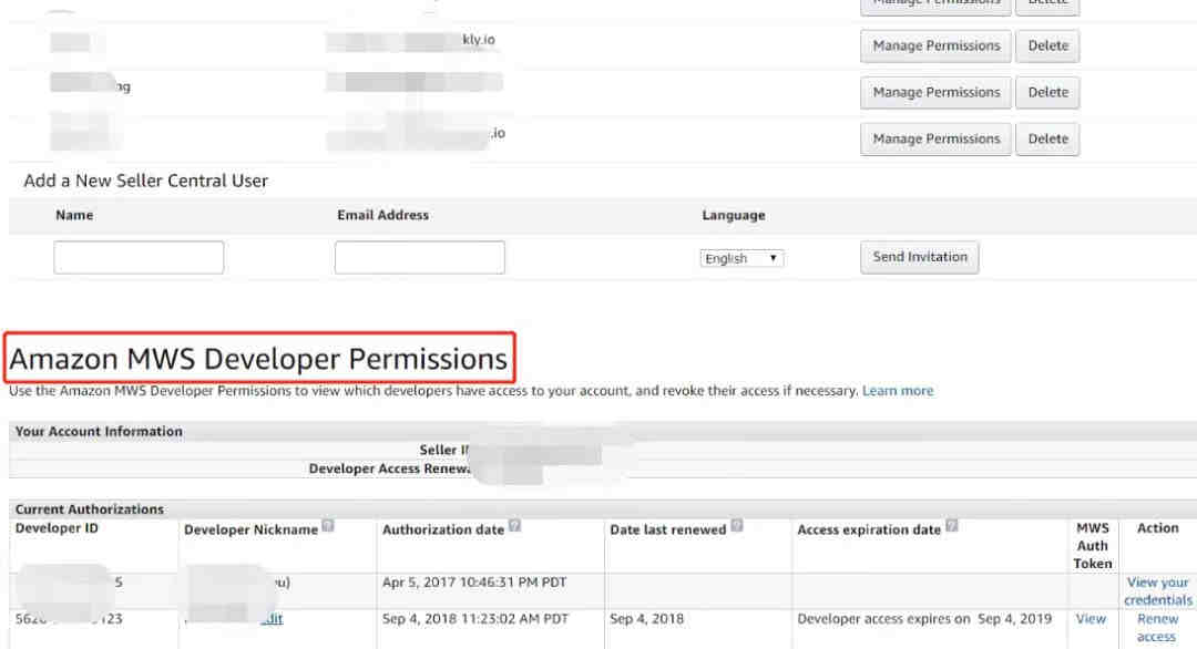 打开您的店铺,从settings User Permissions Amazon MWS Developer Permissions可以看到安全的第三方软件,以及授权期限,如RefundHunter(灵狗退款),期限是明年8月份到期。
