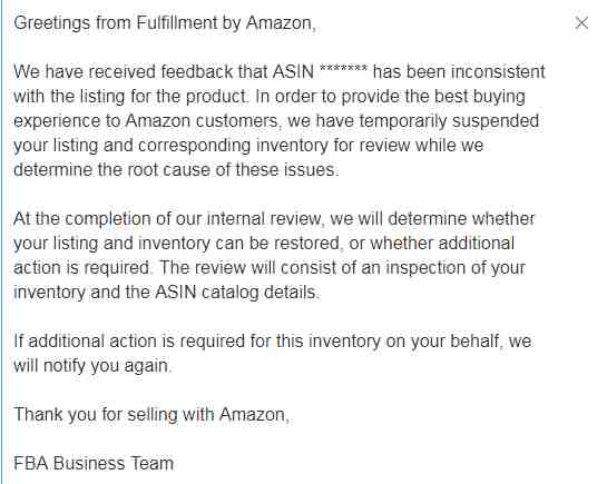 此外,还有一项需要给卖家提醒的信息是——FBA产品信息与ASIN描述不一致真的会被暂停销售