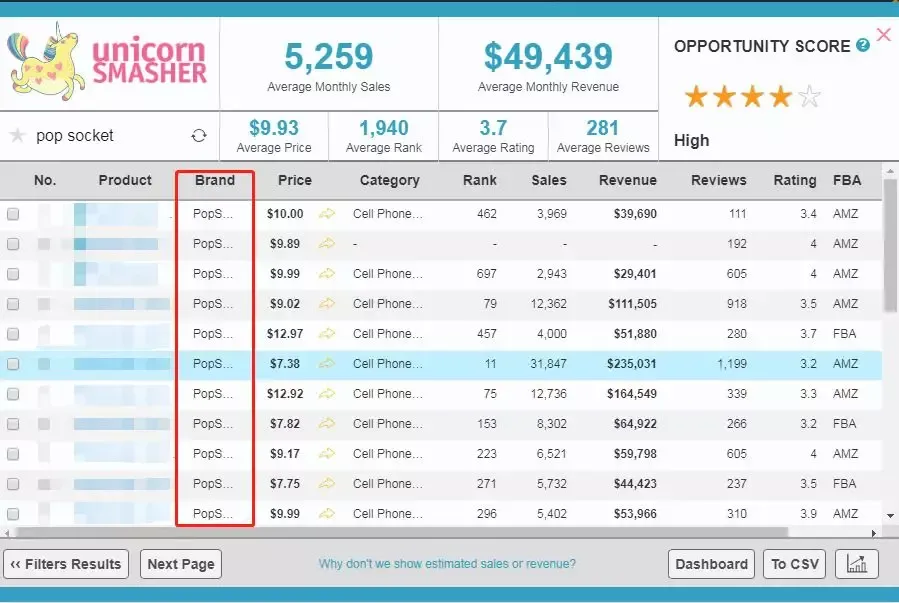 3、在品牌一栏中可以看出,“pop socket”这个品牌频繁出现