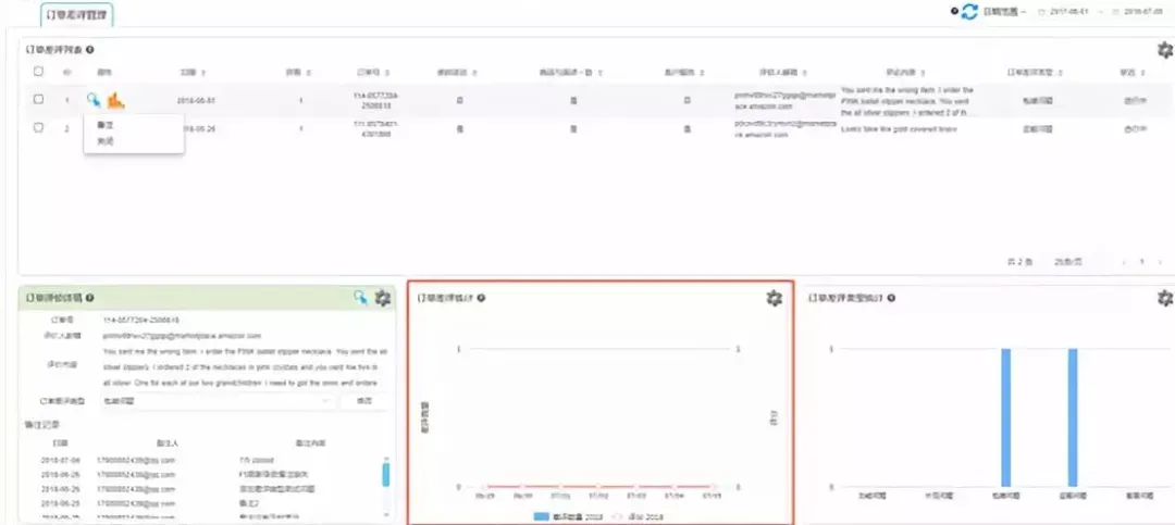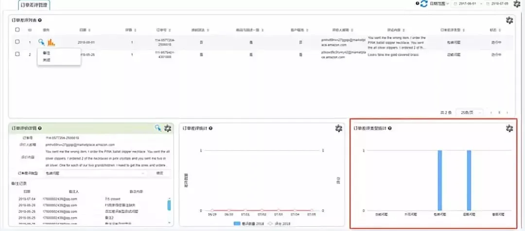 订单差评管理是将所有的订单差评集中在一个界面进行统一管理,可以进行备注,还可以进行分类操作,能让用户第一时间发现差评,及时与客人沟通以移除差评,通过差评类型统计可以优化产品,提高销量。