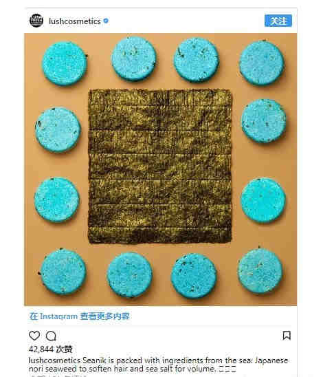 例如,Lush Cosmetics在销售产品方面很聪明。 Instagram的照片并没有详细说明你为什么需要它,而是将所有的谈话和一个内容丰富的标题放在一起。 这是一个视觉空间,所以让你最有创意的人来处理你的Instagram是一个明智的选择的方式,总是让人看起来很新鲜。