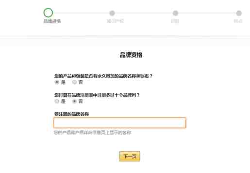 通过链接指引您将填写品牌资格信息、知识产权信息、商标识别等信息用于提交亚马逊品牌备案。