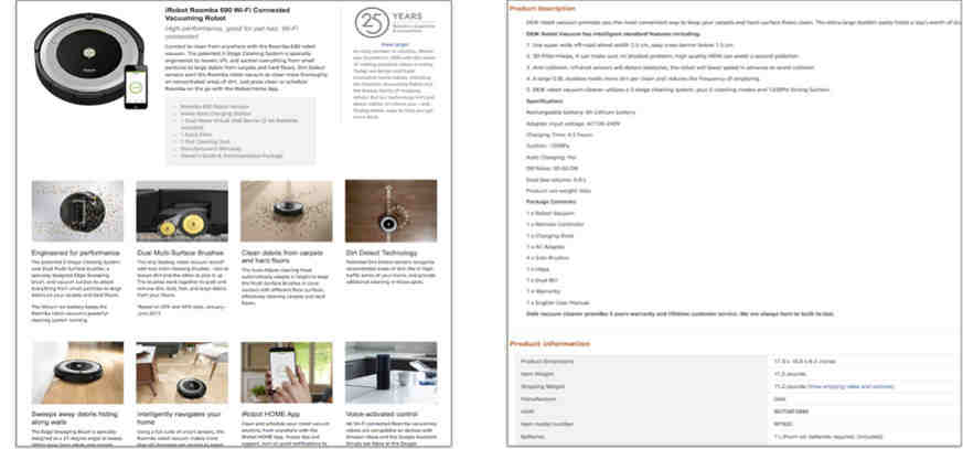 亚马逊品牌备案后可使用图文版品牌描述(A+ 详情页面),为消费者带来更直观更详细的产品信息,购物体验飙升。如图左是品牌备案后可以实用的图文版描述,图右则是普通产品详情信息展示。
