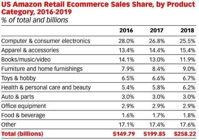 从产品类别来看,计算机和消费电子产品将成为今年美亚站上最吸钱的品类,销售额占亚马逊美国总销售额的25.5%,达658亿美元。