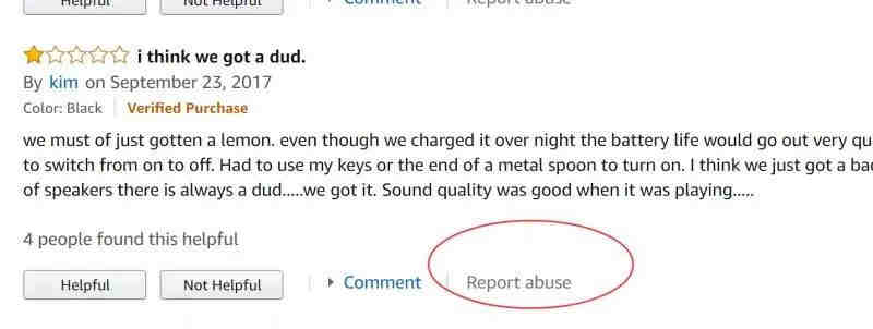 大家进入亚马逊前台那个差评的界面,如下图所示,有一个“Report abuse” 的按钮。