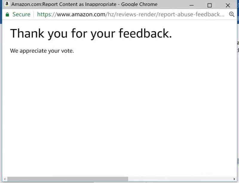 上面其实说的很清楚了,如果你觉得这个review不合适的话,我们会把这个review移除,请点击report让我们知道。大概点击完了report,就是如下这个画面。那么这样就完成了一个前台举报的整体流程。