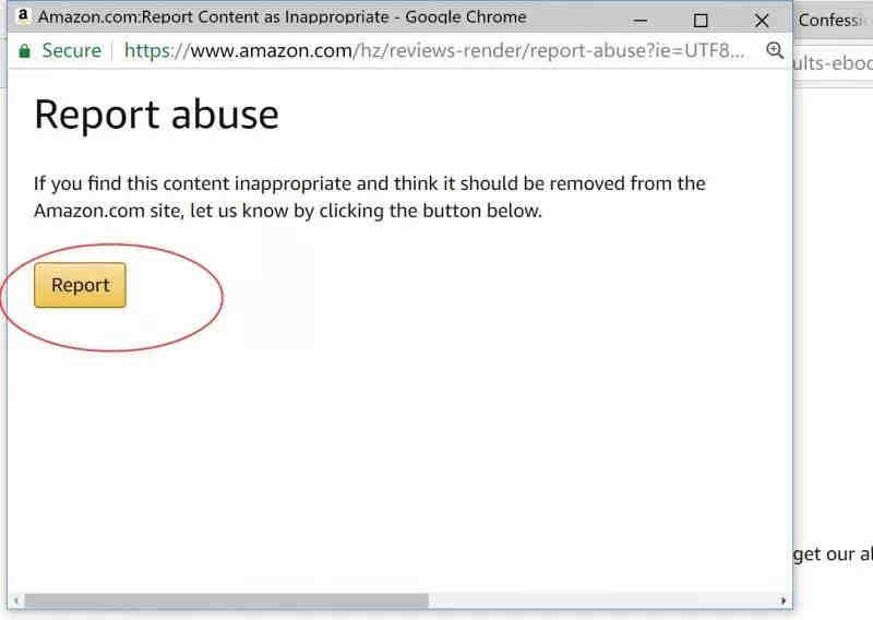 然后我们点击这个“Reportabuse”按钮,会出来以下画面。我们可以根据下面提示,直接点击红圈里面的report按钮。