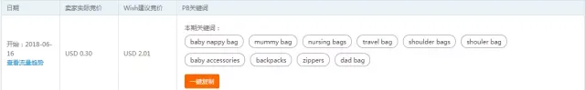 美妆产品一直是wish的热销品类,近一个月,卖的最好的美妆新产品是眉笔。售价(1+1)美金,投放了30个关键词,流量也不错。
