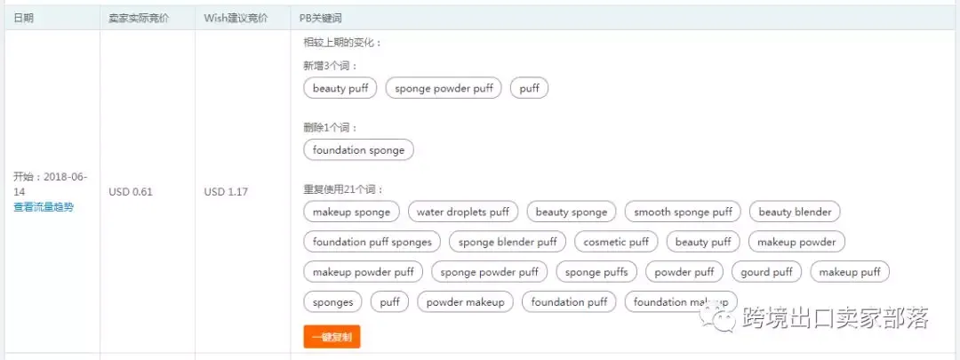 6月5日上架的美妆蛋也颇受欢迎,售价(1+2)美金。该产品刚上架就开始开PB活动,并且在2期对投放关键词进行了调整。