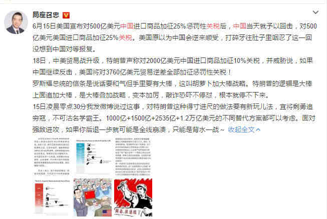 一石激起千层浪,新闻一出网上就炸开了锅,连局座也坐不住了,在微博上炮轰特朗普这得寸进尺的做法: