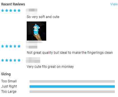这是wish平台上一套指尖猴子毛绒衣服。在产品名称中,该商品完全避开了可能招致侵权的“Fingerlings”名词,而是以“Intelligence baby monkey”代之,产品售价在3美元。从销量来看,上架几个月之后历史销量仅有100+,这似乎不是一款成功的产品。但从客户反馈来看,却是获得了不少好评: