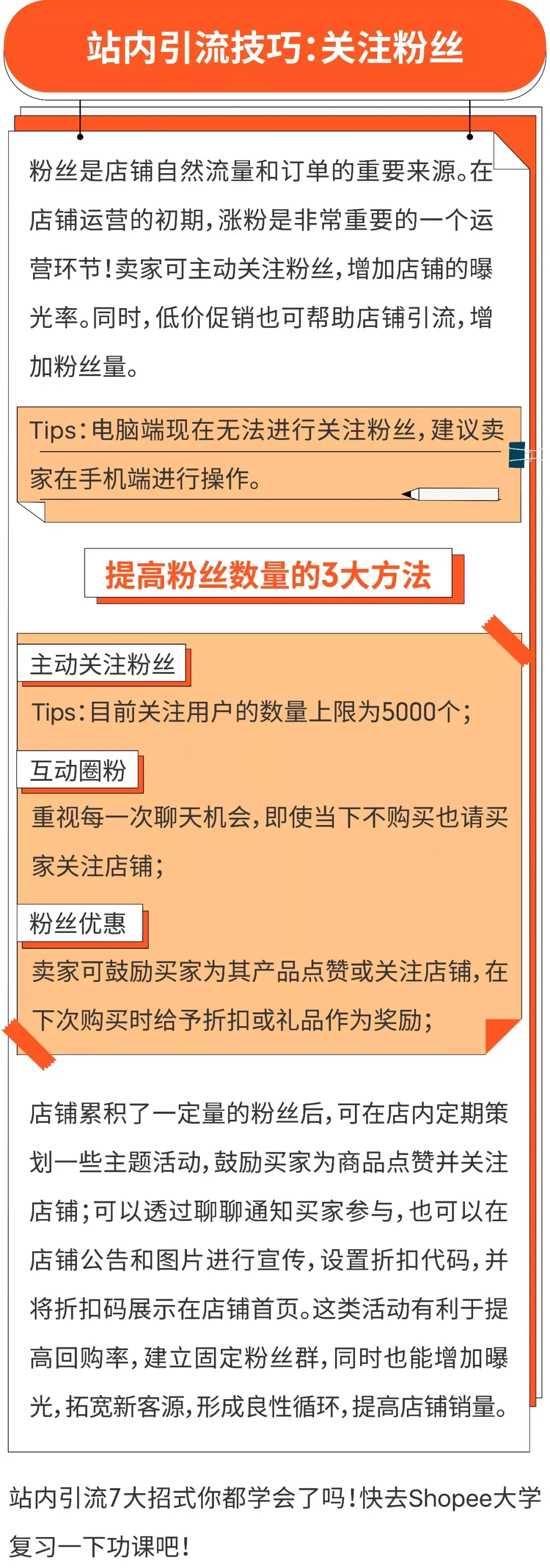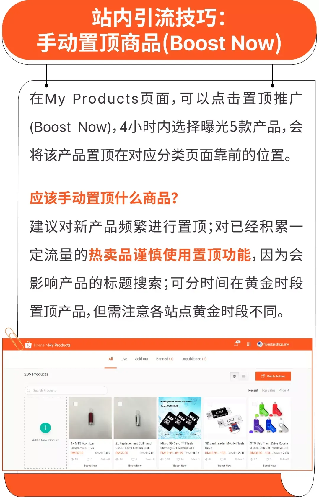前两期Shopee大学精华分享,教大家透过4大方法:类目、搜索、购买关键字广告、报名后台活动进行站内引流;本期再为大家支招,讲解3个运营小技巧:分时段上新、手动置顶商品(Boost Now)、关注粉丝~ 活用这7大招式,站内引流绝对杠杠的!