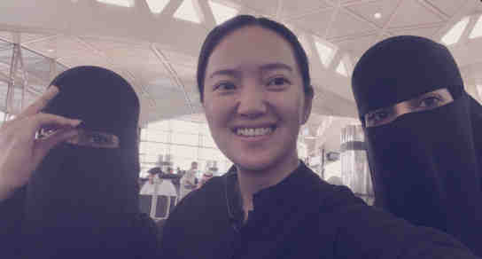 看到这张照片,你们大概以为我被恐怖组织绑架了。但实际上,我只是在跟两个沙特小姐姐合影。
