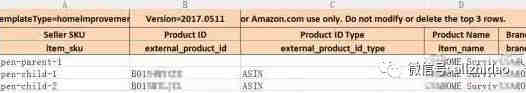 2.填写产品模板每个分类下的模板都会有区别,但都是大同小异,今天就展示一下homeimprovement这个类目下的表格填写。 我们需要清楚,合并两个单独的listing为变体,就需要创建一个虚拟的父体,因此在填写父体的这一栏里,涉及到会变动的选项是不需要填写的。