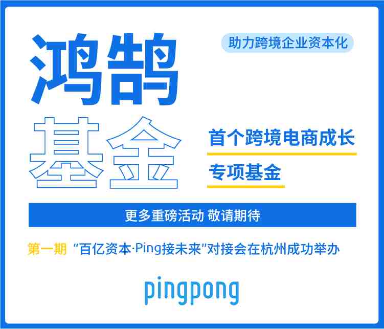 2017年PingPong设立鸿鹄基金,助力跨境电商企业资本化。通过与国内大牌金融及银行机构合作,连接企业和资本方,为跨境电商企业提供低成本的融资服务,破除企业融资难问题,从而推动中国企业的发展和国际化。
