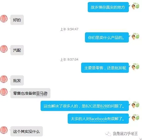 中间还夹杂着问了放多未入行的人,关心的一个“大问题”。你是做B2C还是B2B的,在某些人看来facebook只适合零售的,而且觉得零售和批发的差别真的很大,其实说白了,facebook就是微信,你的客户用微信,那就有成交的可能,你说说现在做哪个业务离得开微信呢?