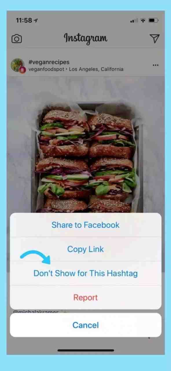 在2018年,Instagram帖子的hashtag的相关性跟往年相比更加重要了。Instagram最近推出了追踪hashtag的功能,这意味着用户不必先搜索Instagram的hashtag然后从里面大量的帖子里找到你的内容,现在你的帖子可以自动显示给订阅了这个hashtag的潜在粉丝看。而且用户现在有权将内容标记为他们不想看到的内容,他们能选择 “不显示该提示标签”来标记不感兴趣或不相关的内容。