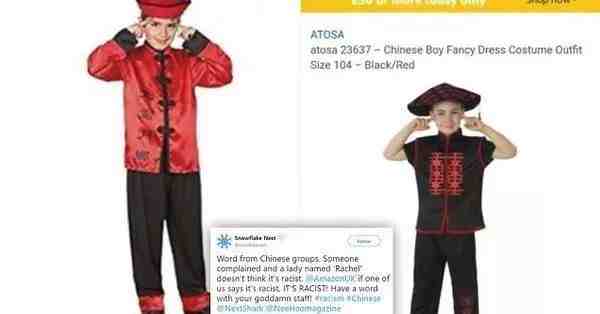 中国男孩化装服装售价在21.86英镑和22.02英镑之间,广告中出现了白人儿童用“斜眼”手势拍摄的照片,这些照片被指利用种族歧视来帮助销售产品。