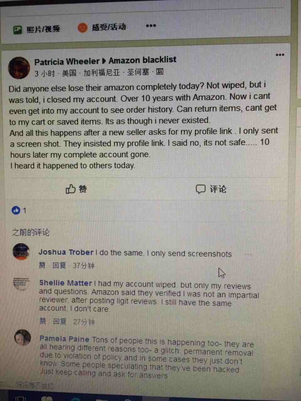 今天有人完全失去亚马逊账号吗?我被告知,超过十年的亚马逊账号被关闭了。现在我甚至不能进入我的账户查看我的订单历史。就好像我从未存在过一样。所有这些都发生在一个新卖家询问我的个人资料链接之后。我只发了一张截图。他们坚持要链接。我拒绝了因为不安全。10个小时后,我的账号消失了。我听说这事也发生在别人身上。