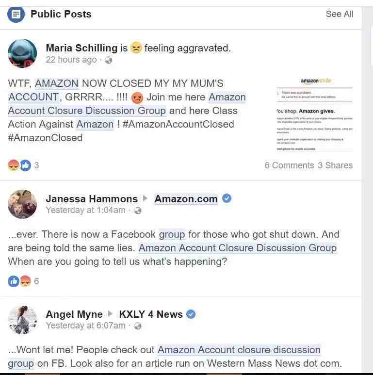 有人在Facebook上创建了一个名为“亚马逊账户关闭讨论组”( Amazon Account Closure Discussion Group)的群组,目前群内成员超过3000名。其中有几位成员表示自己违反了亚马逊的评论政策,比如在为相关商品写下好评以获取奖励。其他人则表示,他们不记得自己违反了亚马逊的任何政策。