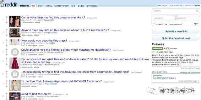 例如,我们打开/r/dresses,这个页面的首页是这样,几乎全都是在问,在哪里可以买到这样那样的裙子的。