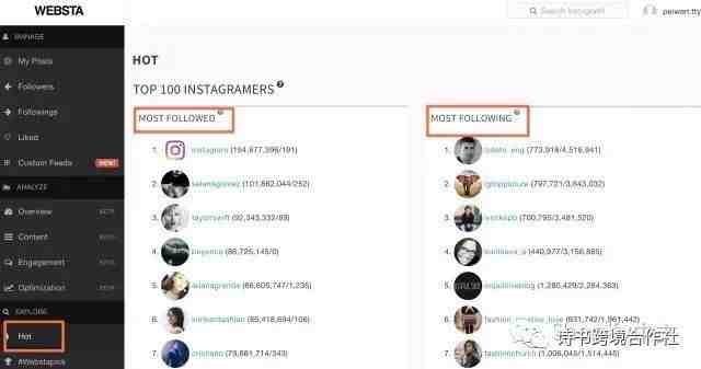 同时,如果你查看https://websta.me/hot,能看到当前最流行的ins 用户以及hashtags。这也可以用来帮助寻找红人。