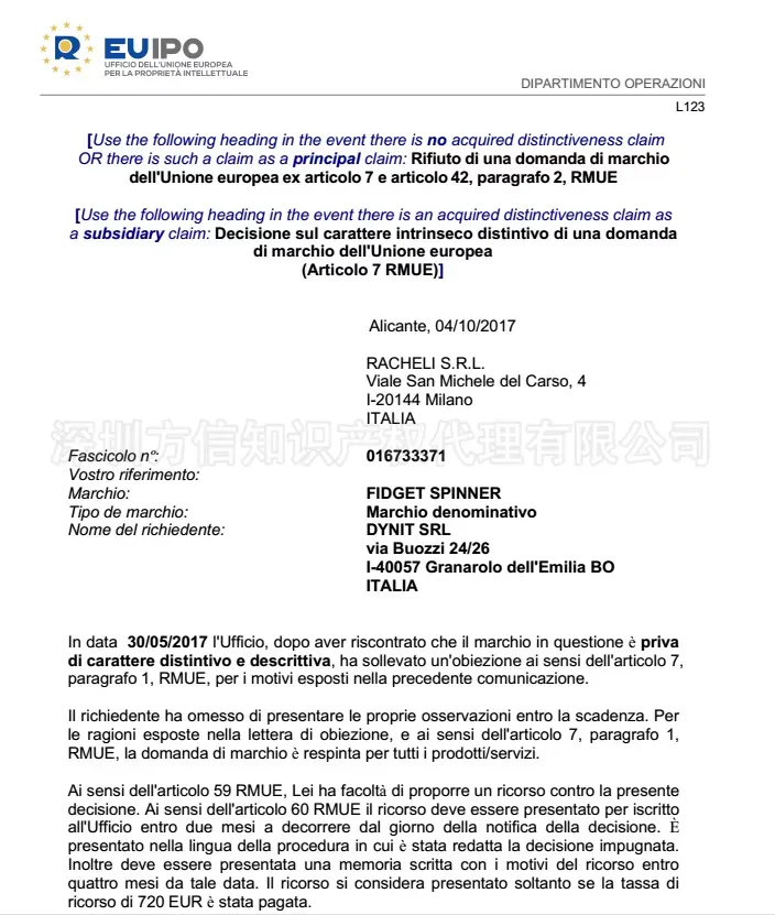 (欧盟商标 fidget spinner)