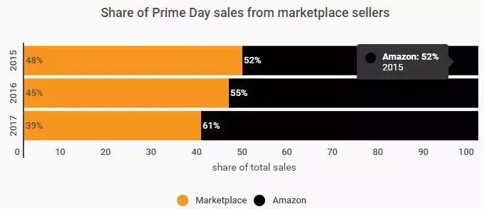 在2017年的Prime Day中,Amazon当天产生了241亿美元销售额,比去年2016年同期的152亿美元增长了58.6%,而2015年Prime Day的销售额是90亿美元。 可见Prime Day每年的销售额是指数级增长,估计2018年Prime Day至少可以达到350亿美元。