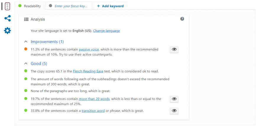 你还可以使用Yoast为每个帖子寻找主要关键字,使帖子更利于搜索。