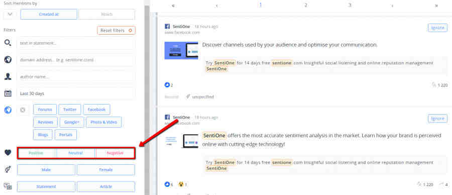 你还可以根据受众态度,即他们对你的内容或品牌的观点是正面或负面来过滤跟踪结果,让你了解受众喜欢的内容,并针对性地发布帖子。