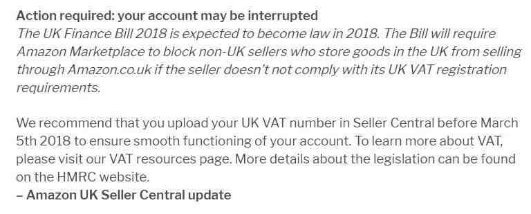 亚马逊英国呼吁所有卖家在3月5日之前提供增值税号码,你收到通知了吗?