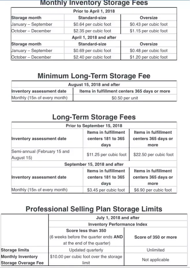 2.最低长期仓储费:在2018年8月15日,对超过365天的商品设置最低收费标准,为每月每个商品0.5美金。