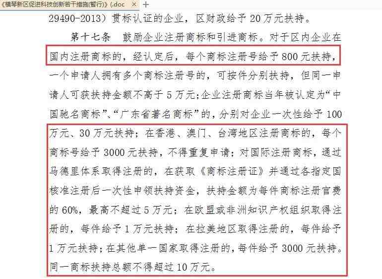 (二)在欧盟、非洲知识产权组织取得注册的,每件资助1万元;