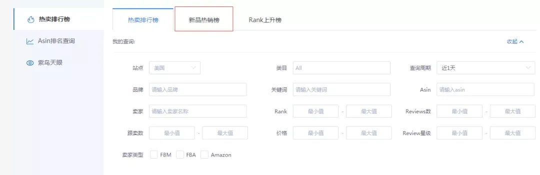 新品热销榜的筛选条件、ASIN真实销量和历史数据等查询都跟热卖排行榜一样,可以进行有效的筛选出新品中热卖有潜力的商品(Rank上升榜同理)