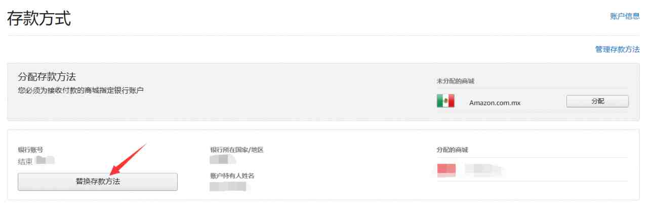步骤:后台卖家中心-设置-账户设置-存款方式-替换存款方式