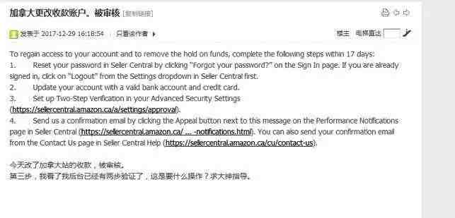 (注:17天内完成,如果在17天内未按照上述步骤操作,亚马逊可能会取消您的列表,并在您的帐户中持有最多90天的资金。)