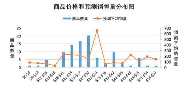在本期Changeable Letter Boards品类Best Sellers榜单前一百的商品中,商品最高价$54.99,最低价$8.99,平均价格$29.29。该品类商品价格跨度很小,商品价格较为集中,在$27-$30的商品最多,有20款商品。$30-$33有着最高的预测平均销量,尚存市场空间。