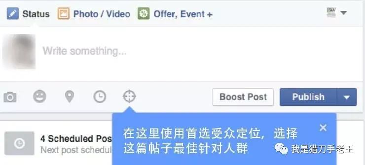 “首选受众定位”(preferred audience targeting)是Facebook新增的一个定位功能:这项新功能可让发帖人针对某一帖子进行特定的受众定位推广,而且免费!没错:你可以选择针对特定人群而发帖,也只有被你选择的人才会看到你的发帖!这实际上是Facebook让权于商家(发帖人)的一种姿态:让商家自己先进行受众过滤、主动滤掉那些不太可能对某条讯息感兴趣的人;对于Facebook和用户来说,这自然是有利的;而对于商家来说,也是利大于弊:比起之前懒惰的“广而告之”,商家被迫做出更有选择性和针对性的发言,以增强互动;被迫把重量不重质的讯息发布,变成更有针对性、社群性和重质不重量的对话。这一新功能的核心便是:想要提高互动、必先停止噪音(不要打扰对你无感的用户);想要有效对话、必先尊重用户(给予有价值的讯息)。