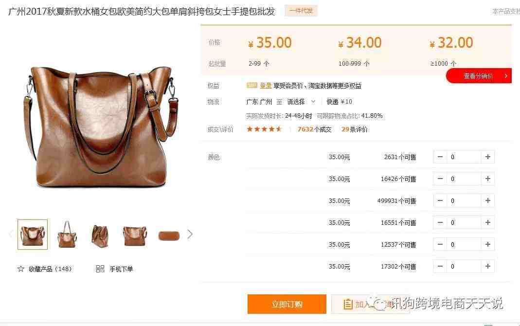 例如这款手提包,在亚马逊,wish和速卖通,销量都还不错。