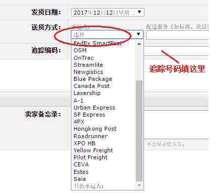 如果订单只在别的网站能追踪,是不算数的哦。要保证订单有效追踪率,订单需要在亚马逊网站能追踪!在卖家中心,已经有很多物流公司可以选择,请注意,从这个框框里面选对了。经常有卖家朋友自己填五花八门的承运人名称,导致追踪不到。如果下拉框里面没有,就选择“其他承运人”,然后在后面的文本框里填物流公司的名称。另外,答应我,追踪号码一定要写对好不!!!