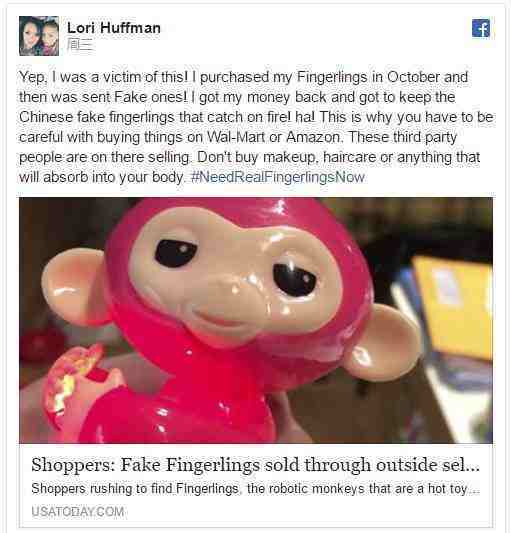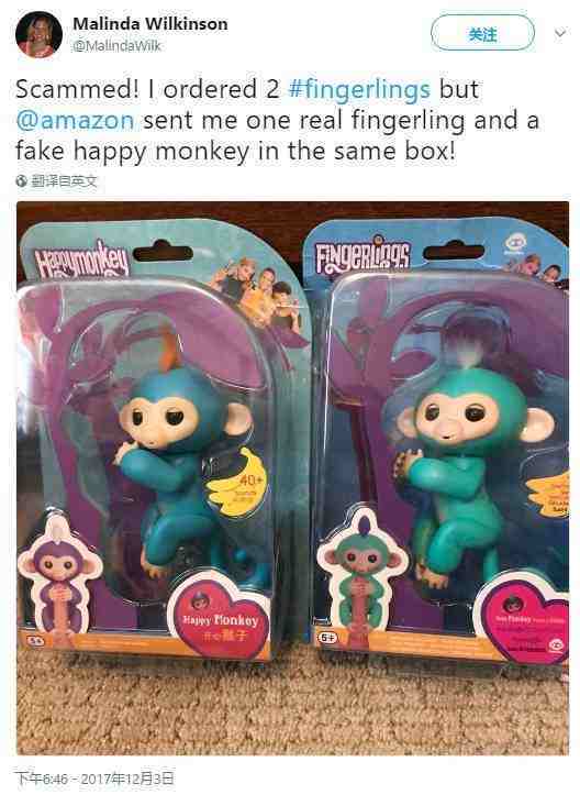 从社交媒体上的抱怨来看,除了沃尔玛,亚马逊和eBay也是假猴子重灾区: