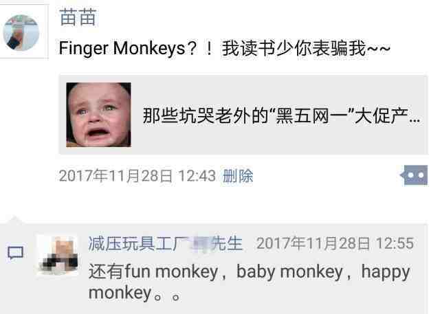 说实话,看着那些假猴子包装上的中文,小编妹纸的脸一阵烫~~突然想起本人上周写的一篇文章,这位减压玩具工厂老板的留言早就真相了……