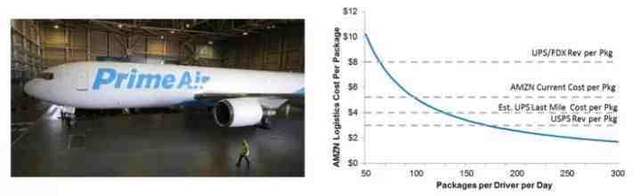可以说,京东是靠着自己的“京东物流”才有的与天猫叫板的资本,而亚马逊也正做着同样的事:过去2-3年里,亚马逊一直在不断建设自己的物流网络,他们在美国和欧洲等好几个城市收购部署“最后一公里送货”,收购很多的卡车/拖车,花15亿美元建设肯塔基航空枢纽,租用40架B767空运货机,取得海运代理执照,建立内部货运管理技术平台。