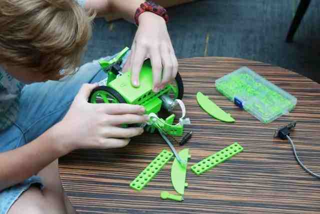 (孩子正在研究SunFounder教育机器人)