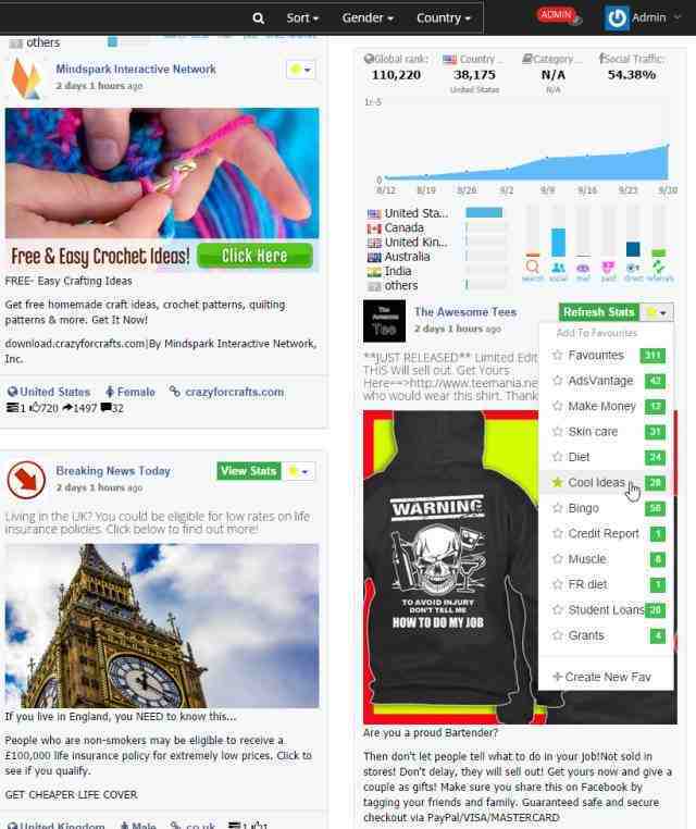 有多少人到这个看到(view),多经常被看到过,被谁看到过,使用的设备(pc 或者mobile)socialadscout都会记录的很详细。