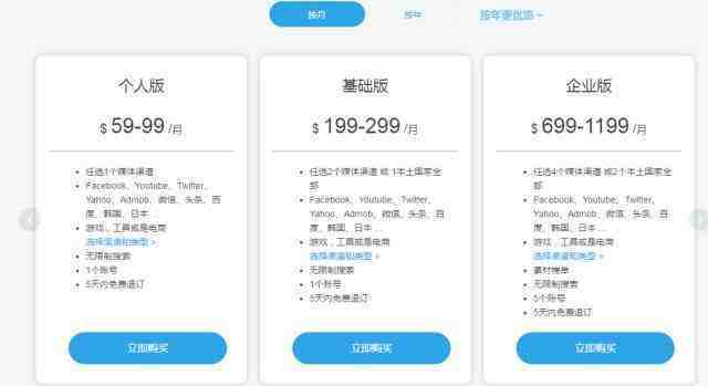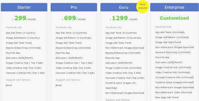 在价格上,Adseedata还是比较贵的,如下图,中小团队可以选择适合自己的套餐。